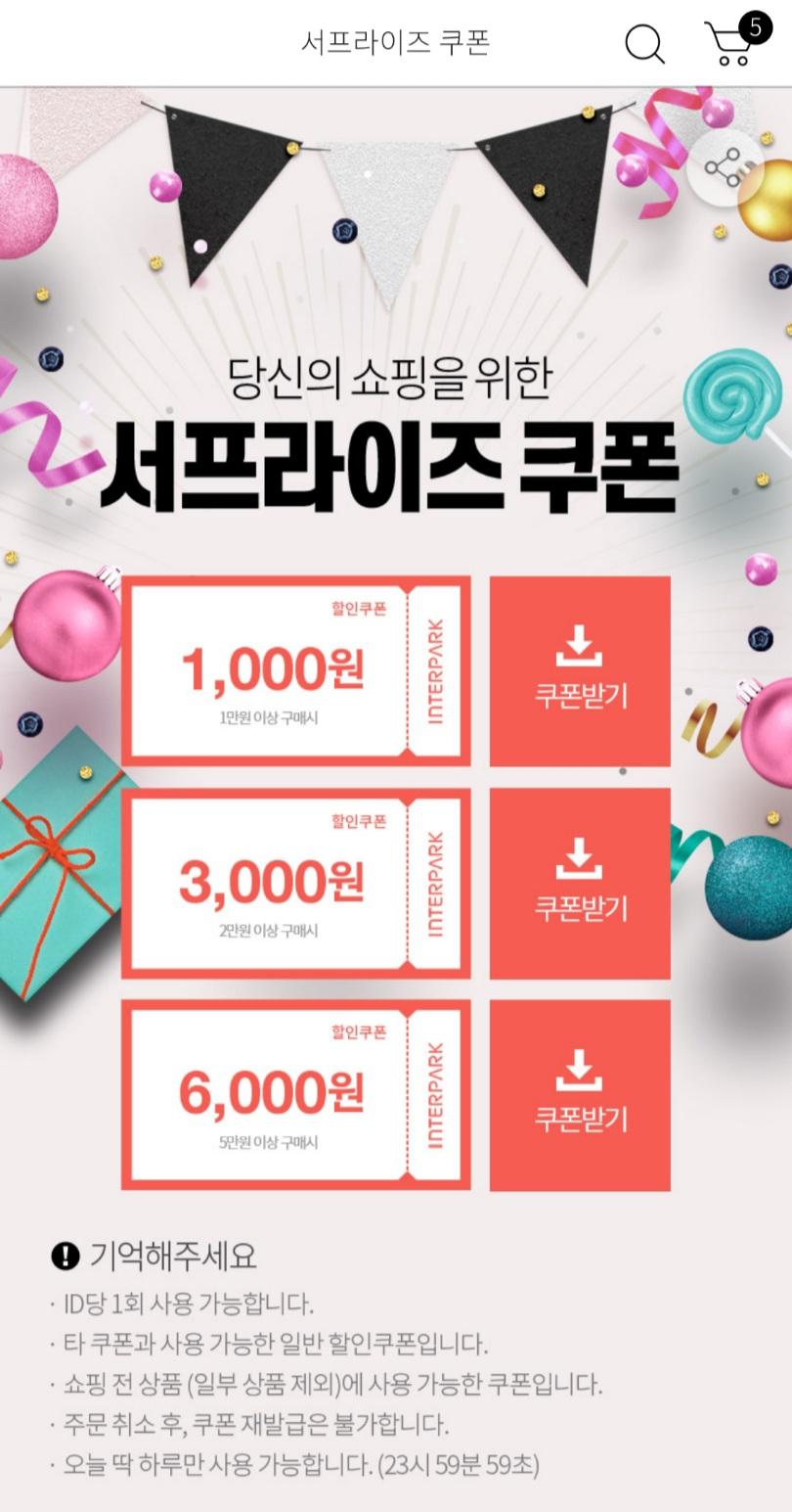 인터파크 서프라이즈 쿠폰은 얼마 간격으로 주는 것인가요? > 자유게시판