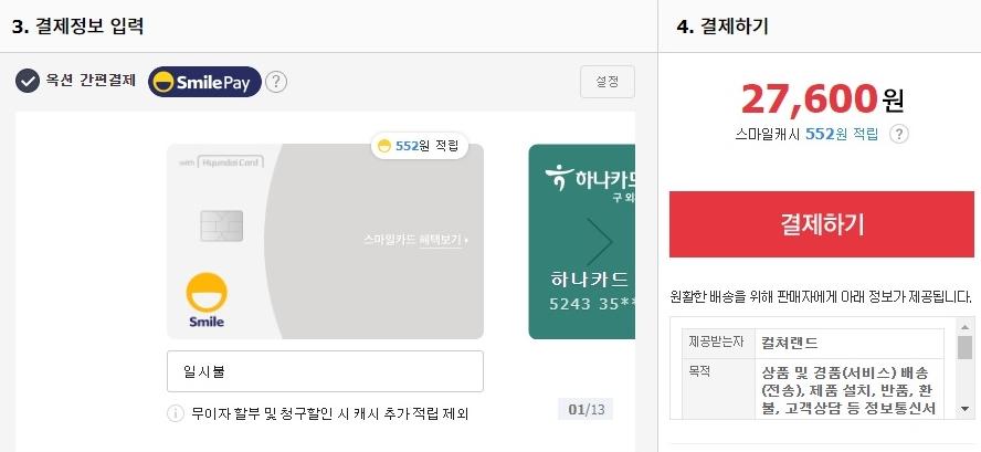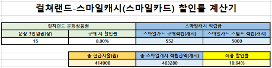 스탬프15장까지 구매안해서 5천캐시 못받더라고 해도 10%정도 할인효과가 있습니다.(스마일카드 552캐시 적립시)