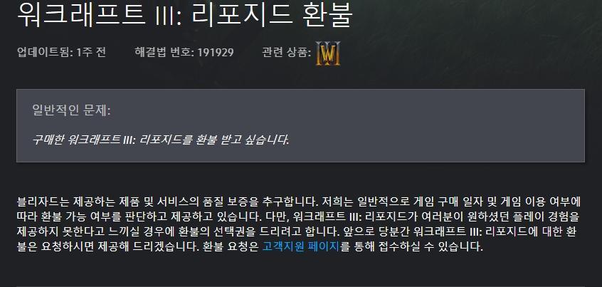 블리자드가 다 환불 해 줄 정도로..