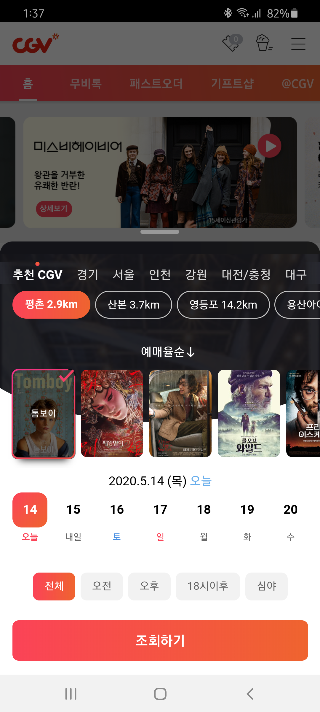 영화 볼 일이 없어서 CGV 앱 되게 오랜만에 보네용..ㅋㅋ |