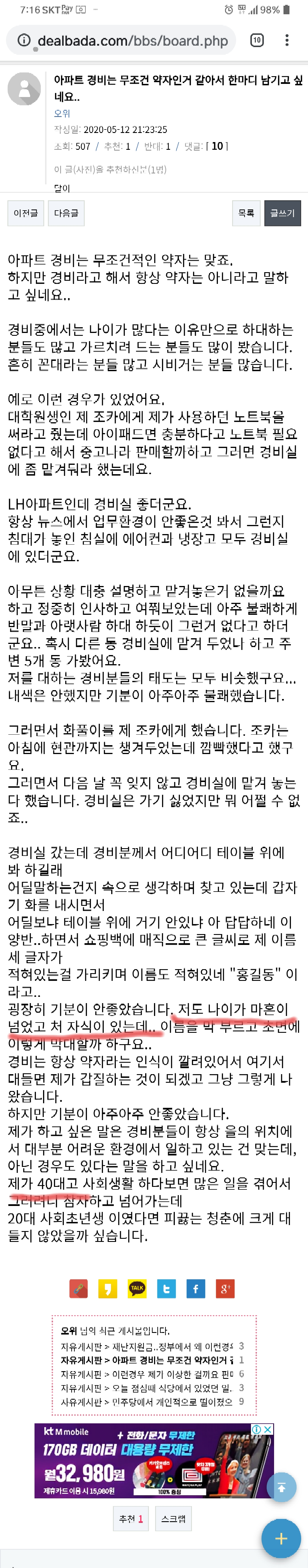 모든 경비원이 약자인 것은 아니다 라는 주장글을 쓰면서 갑자기 연령대가 바뀌었습니다. 그래서 의문이 들어 오위님의 설명을 요청한 겁니다.