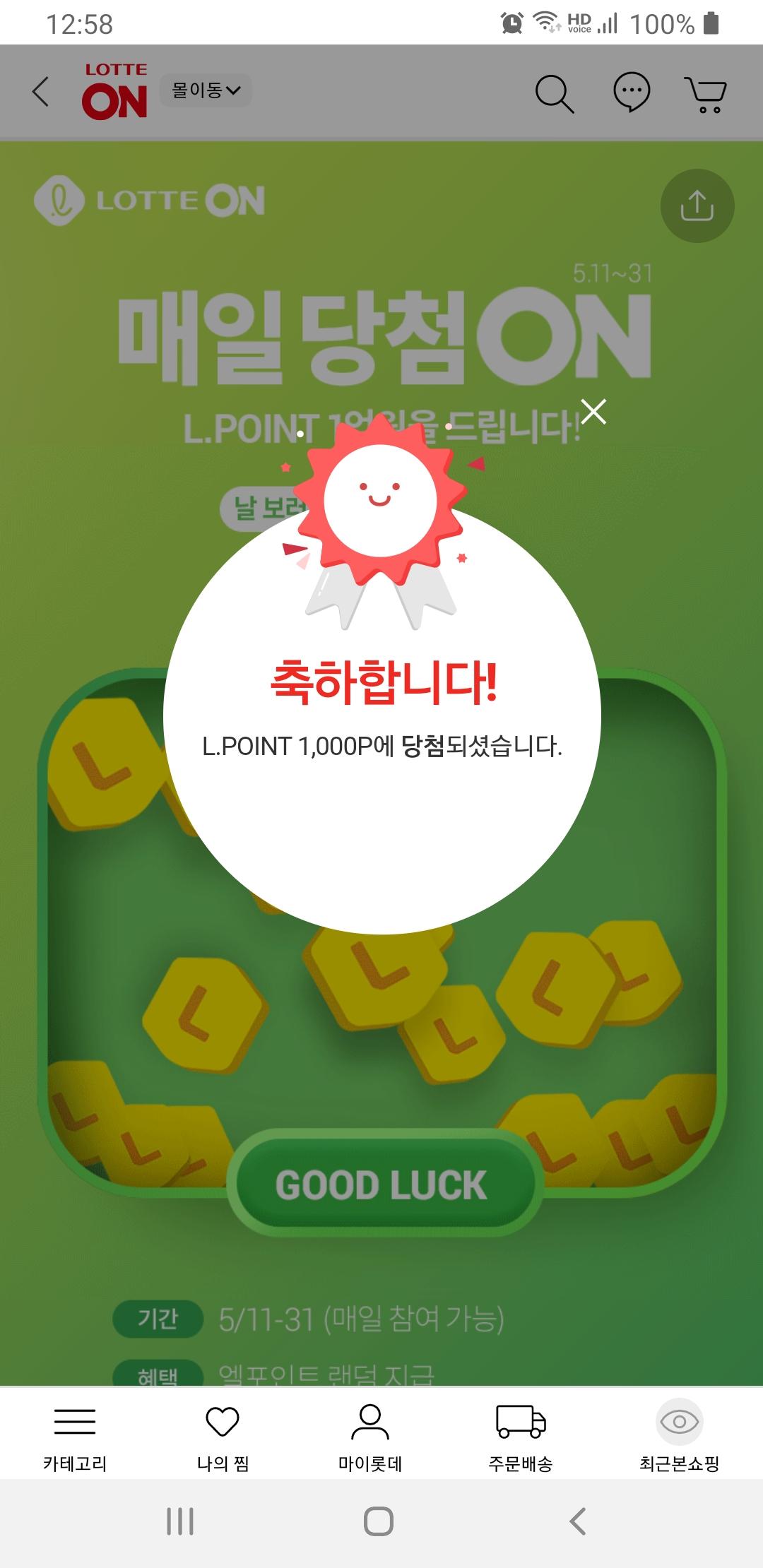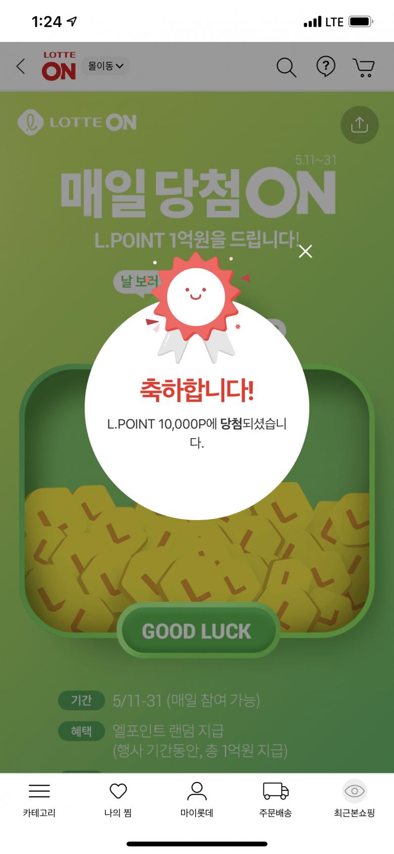 롯데 온 잘 되네요..1,000 포.. > 자유게시판
