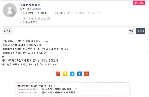 유독 피자마루만 계속 나오네요 당췌 관리가 안되는 모양입니다