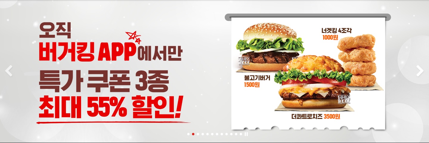 앱 쿠폰으로 콰트로치즈 와퍼 3500원에 날리고 있군요.