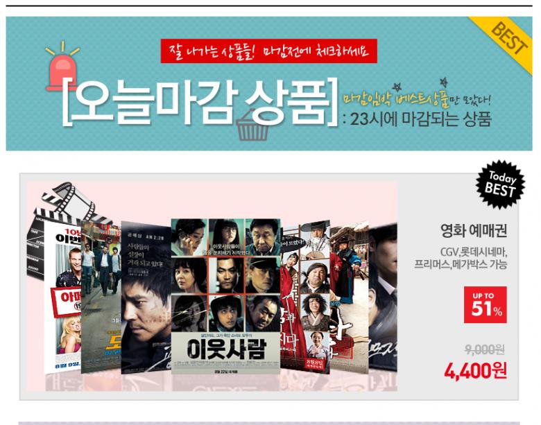 위메프에서 영화 관람권을 저렴하게 팔았습니다 장당 3천? 4천? 꼴이었던 걸로 기억을