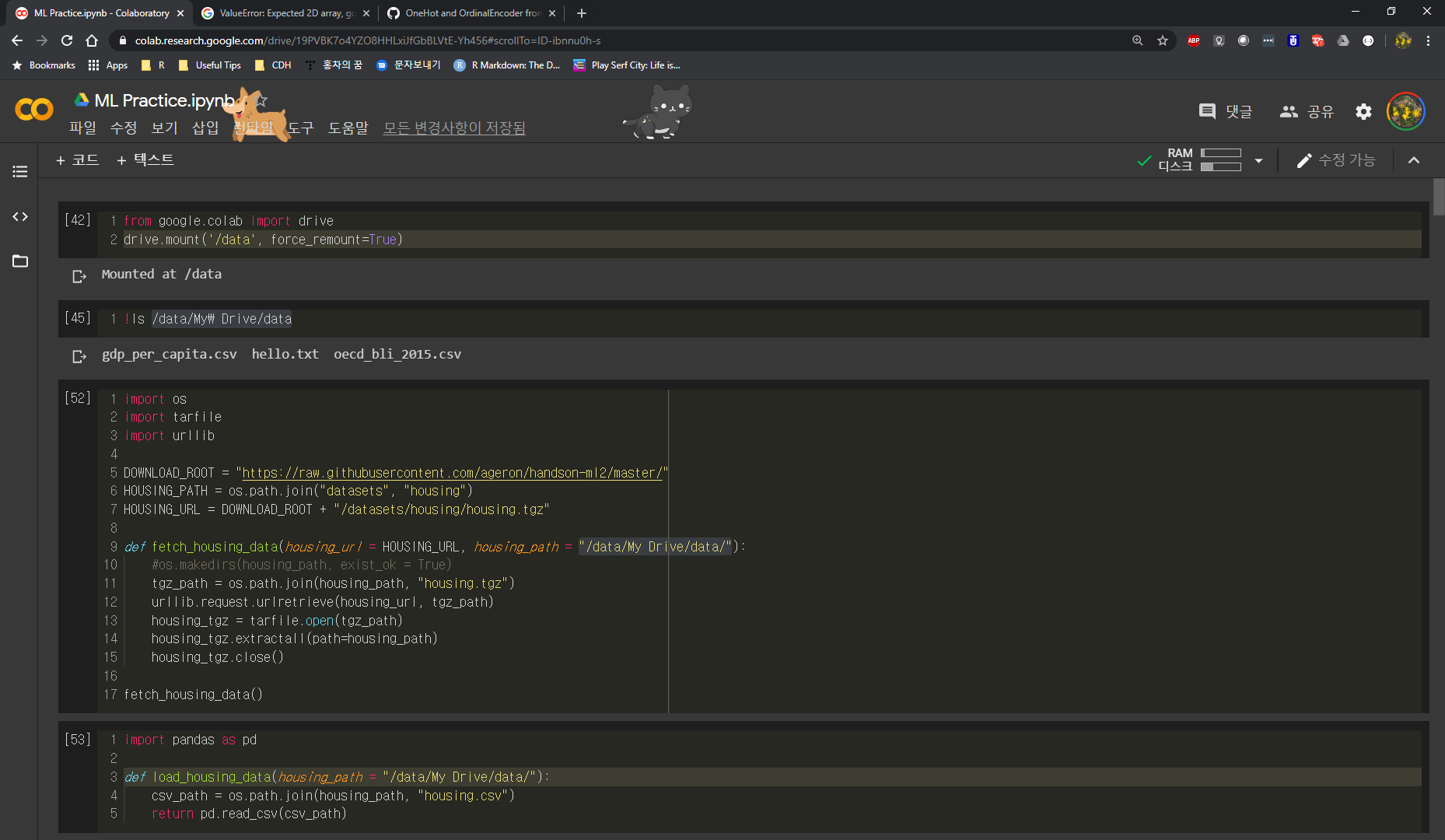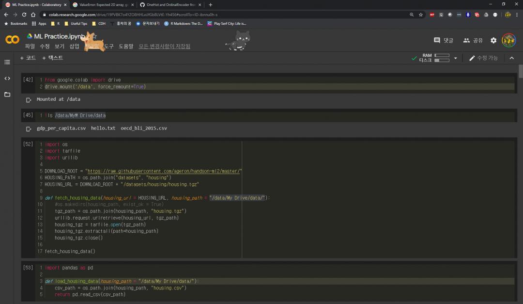 그동안 R만 사용해오다가 요즘은 하나같이 Python 이야기만 하고 Machine Learning의 분위기가 TensorFlow나 Keras 때문에 Python으로 많이 넘어가는거 같아서 책 하나 사서 공부하는데 어렵네요.. 그래도 굴러먹은 가닥이 있어서 책에 나오는 코드를 그럭저럭 읽을 수는 있는데 나중에 이걸 안보고 해보라고 하면 Method를 몰라서 허둥거릴게 자명하네요.. ㅠㅠ