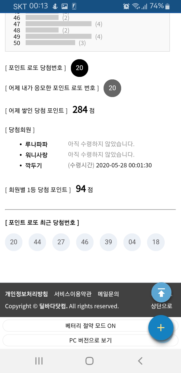 포인트로또 참여 했는데