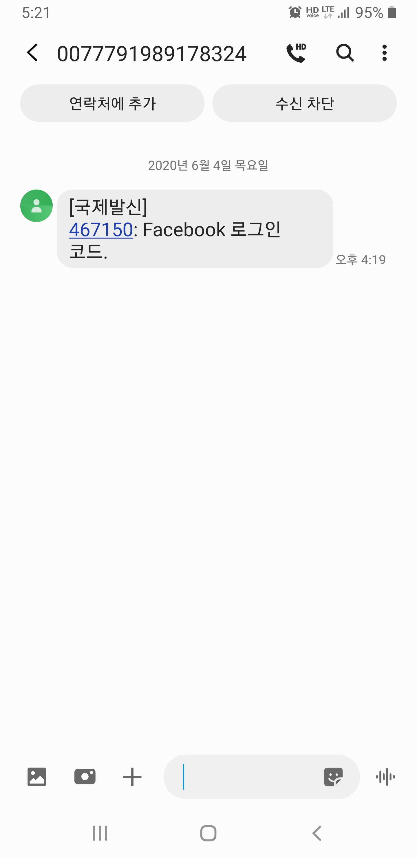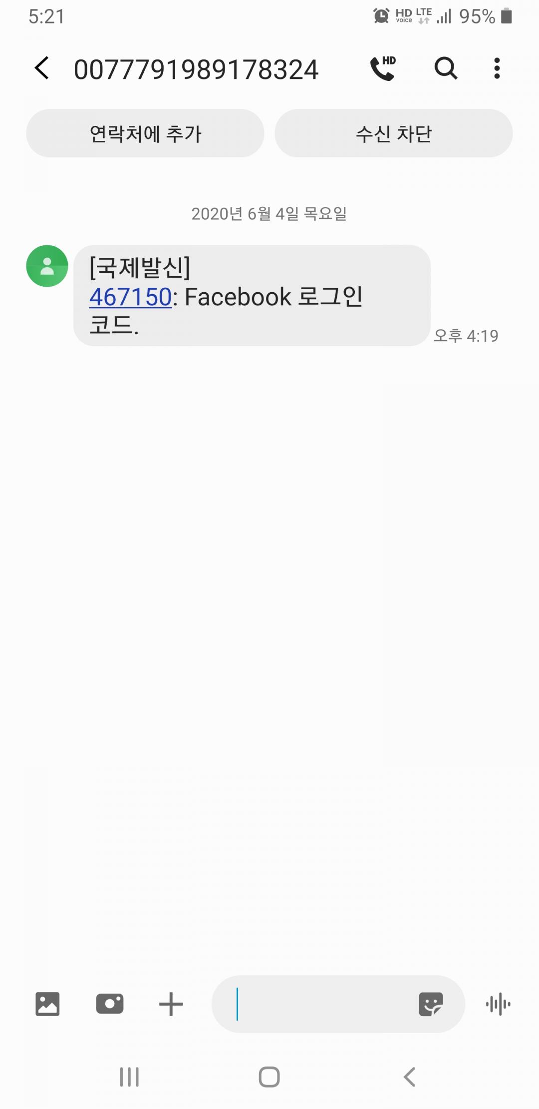 페이스북 인증 문자..