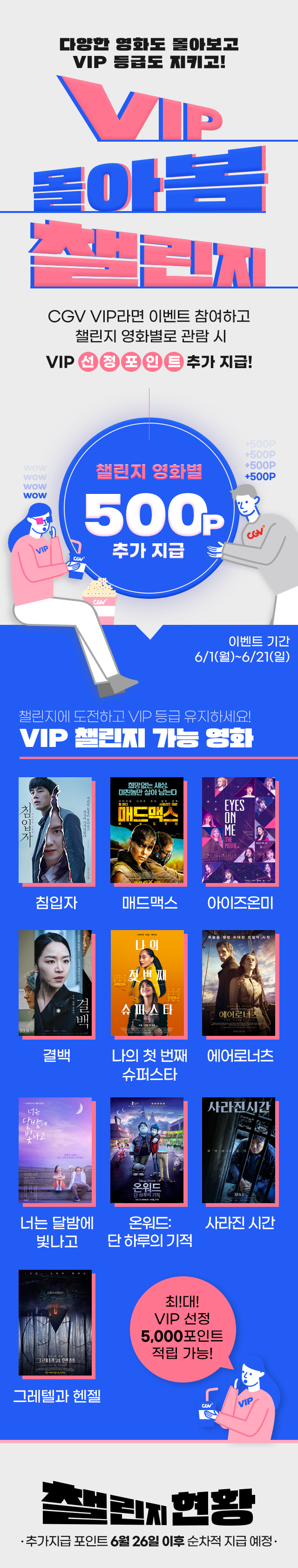 6월중 상영하는 10편중에 1편마다 추가로 500점을