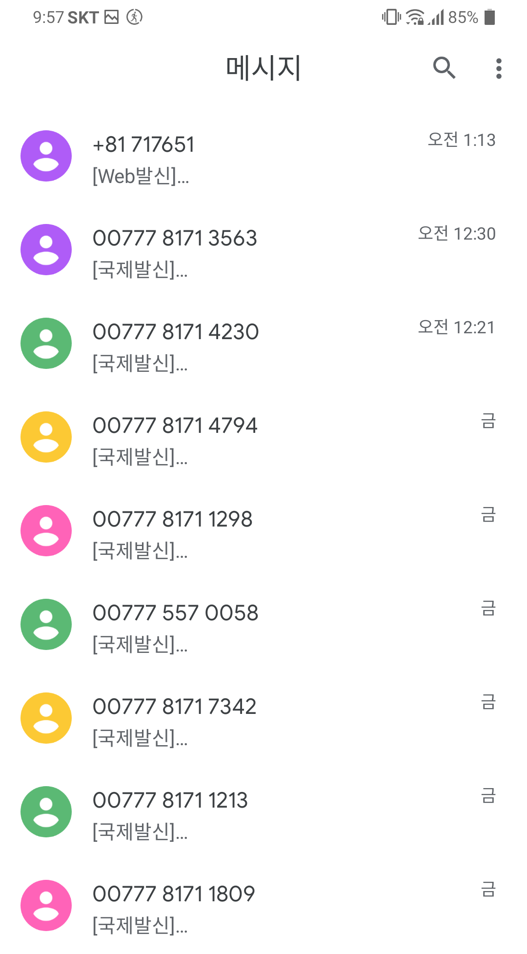 어제 오후부터 계속해서 인증코드를 보내주는 믄자가 오는데 구글 계정은 아닌거 같고..