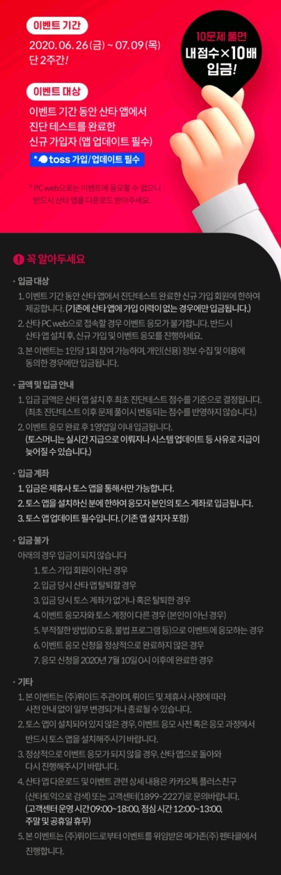 간단한 테스트 후 산타토익 어플 가입하셔야 합니다