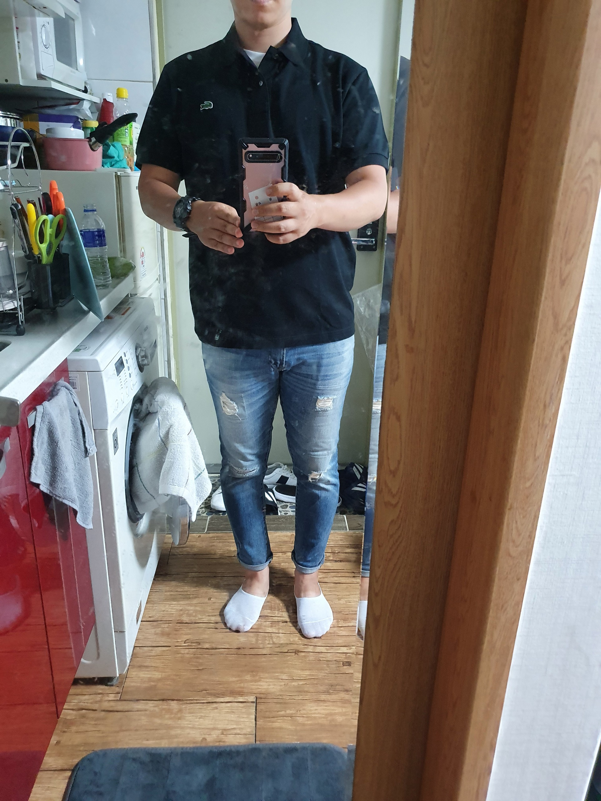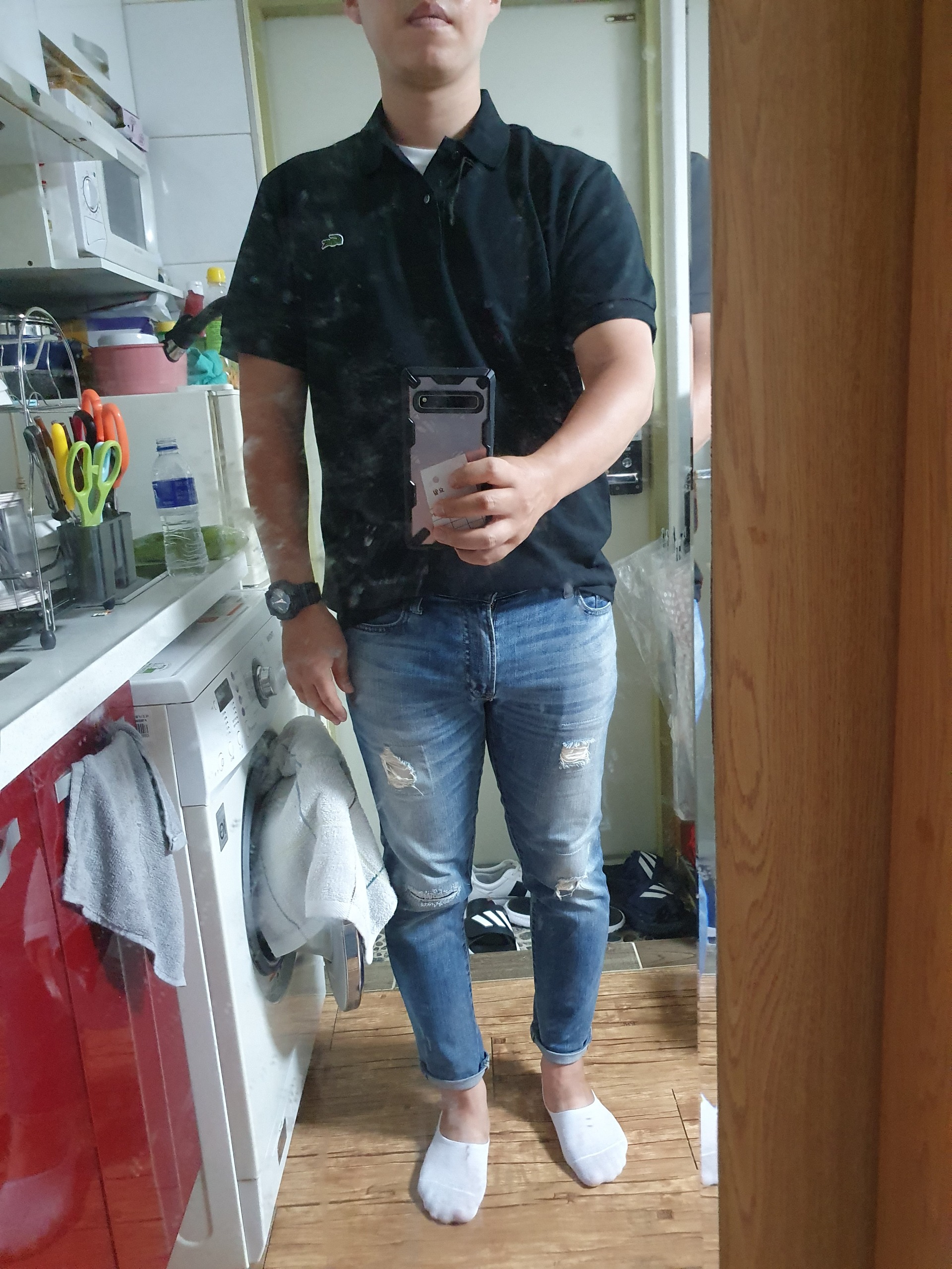 찢어진 청바지 말고 다른 면바지 입으면 좋을것같네요.
