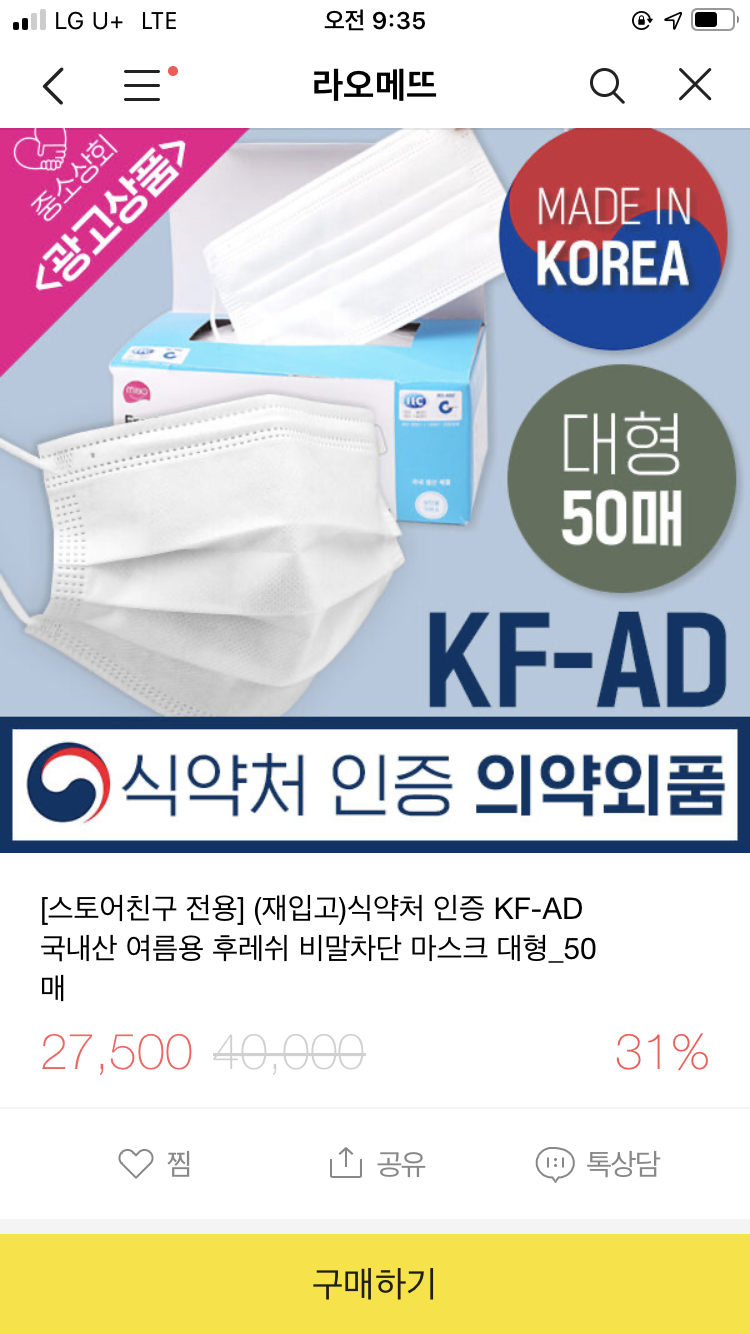 라오메트비말차단마스크요
