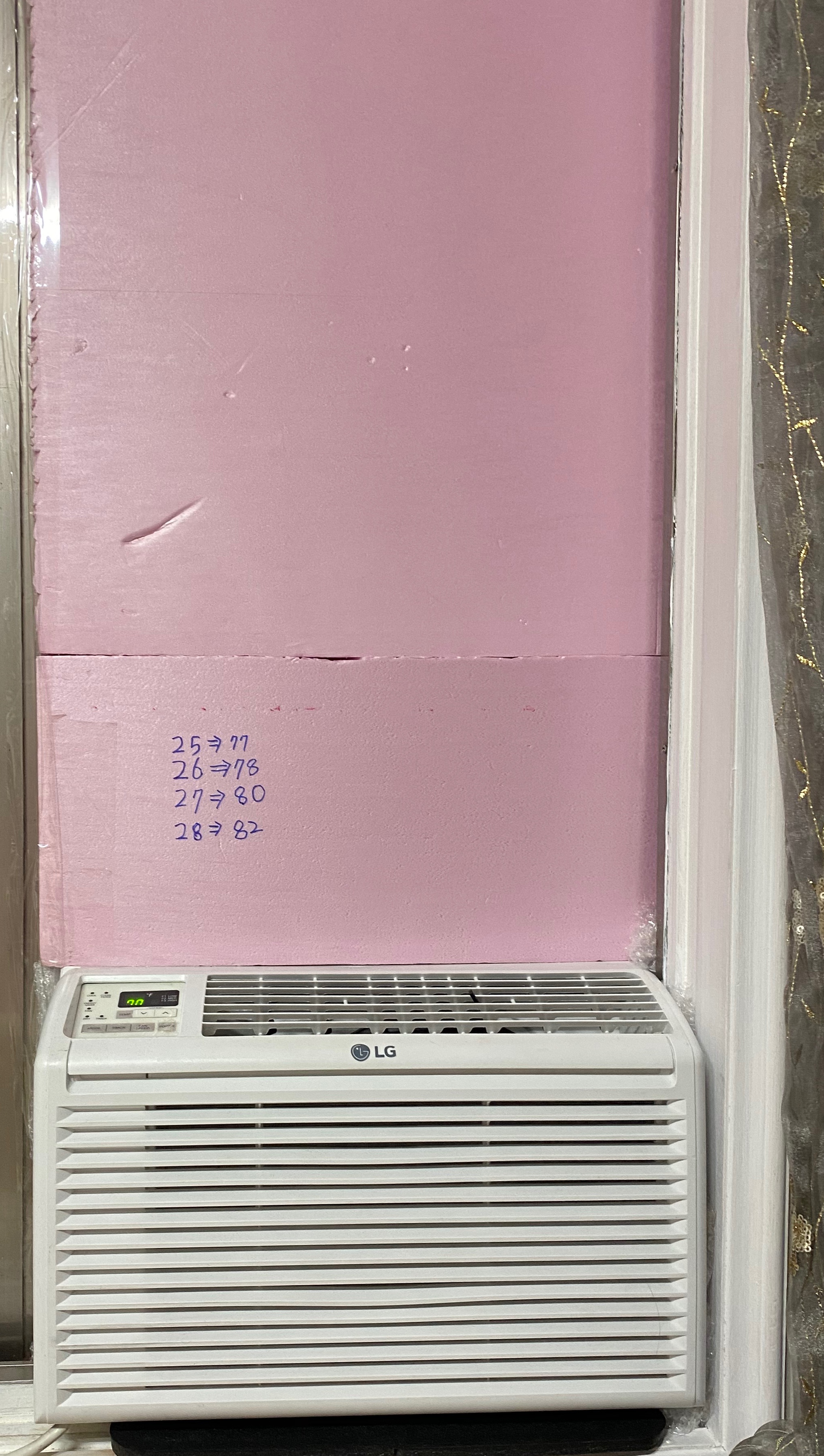 베란다에 보관하고 있던 창문형에어컨 급한 대로 설치했습니다