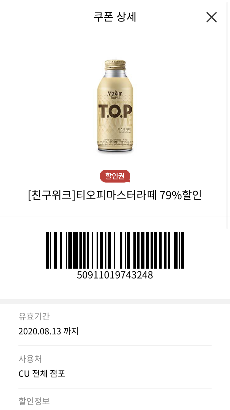 Cu커피할인한거요