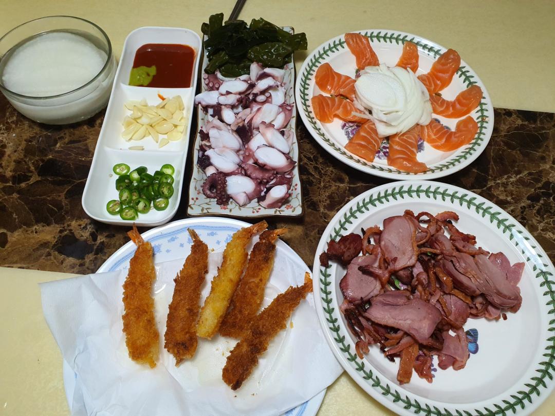 저도 오늘 월급 받았어요 집에 돌아오면 저런 음식이라니 너무 부러운데요 |
