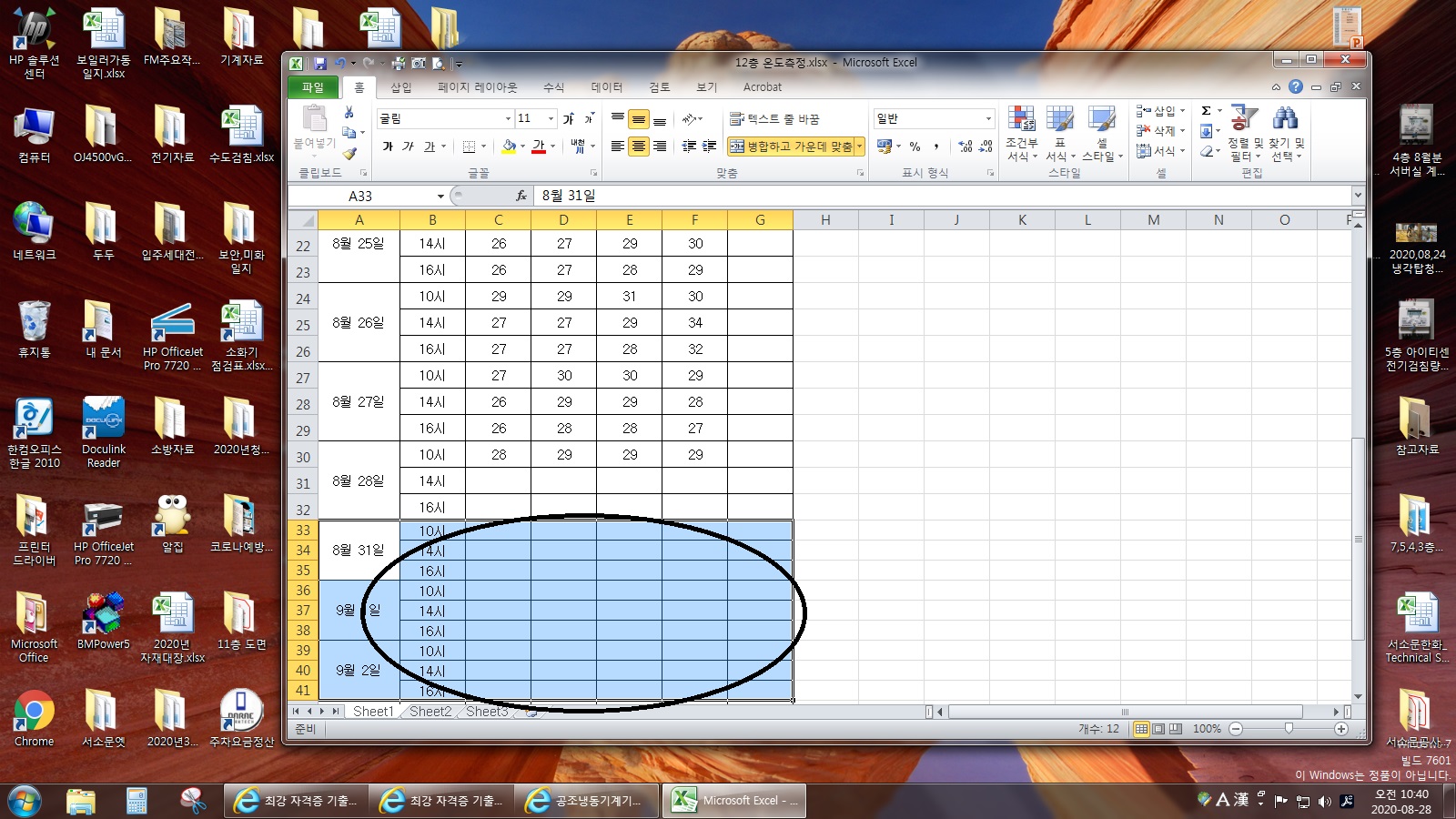 원하는 곳의 행 높이를 보고, 조정하고 싶은 곳 선택해서 행높이로 맞추면 될것 같은데요 |
