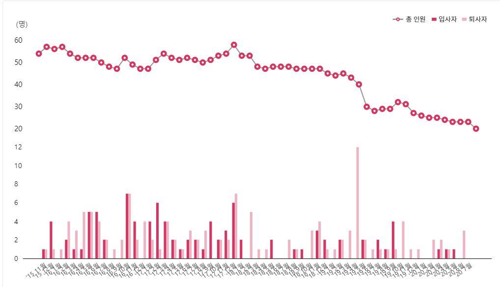 확실히 비전이 좋은회사는 아닌것같습니다. 한달에 한명꼴로 나가는것같은데