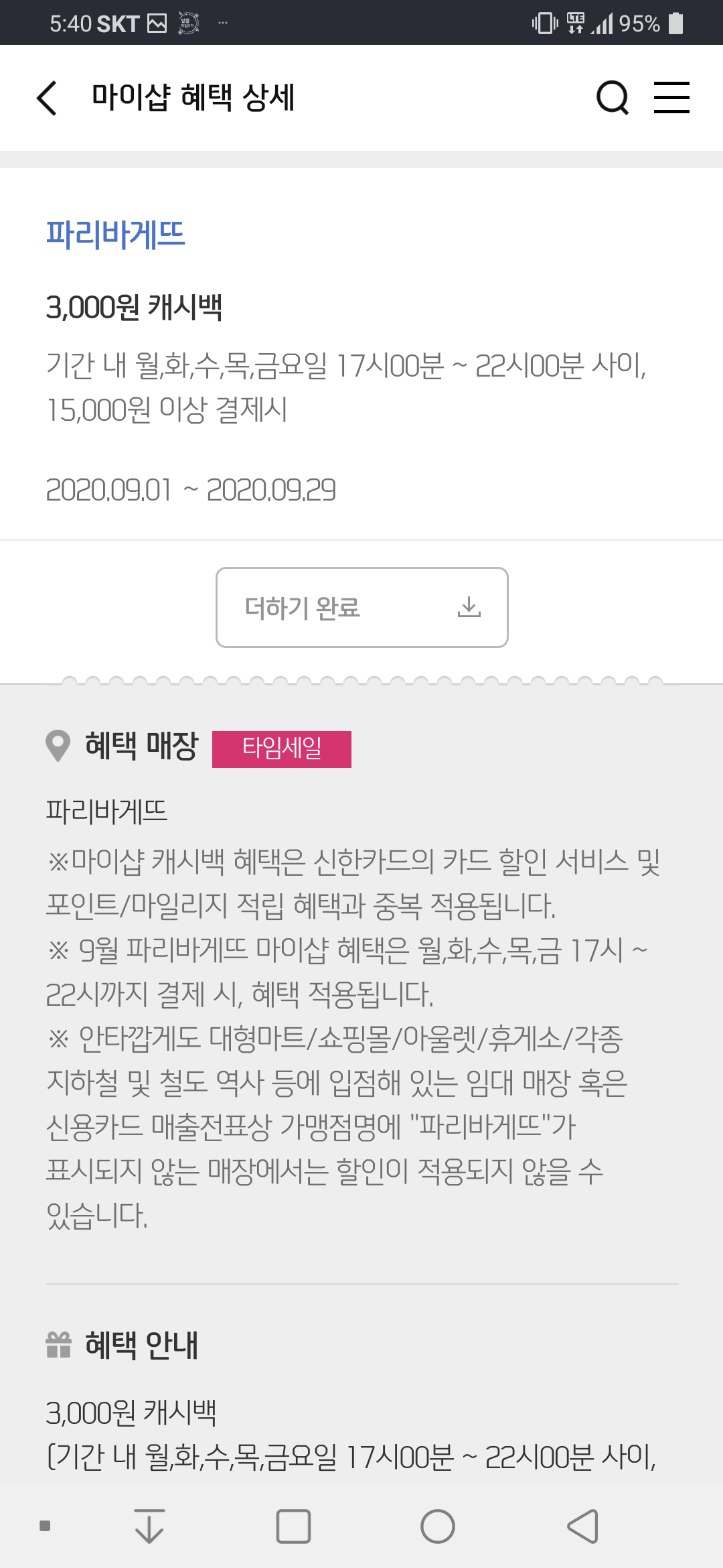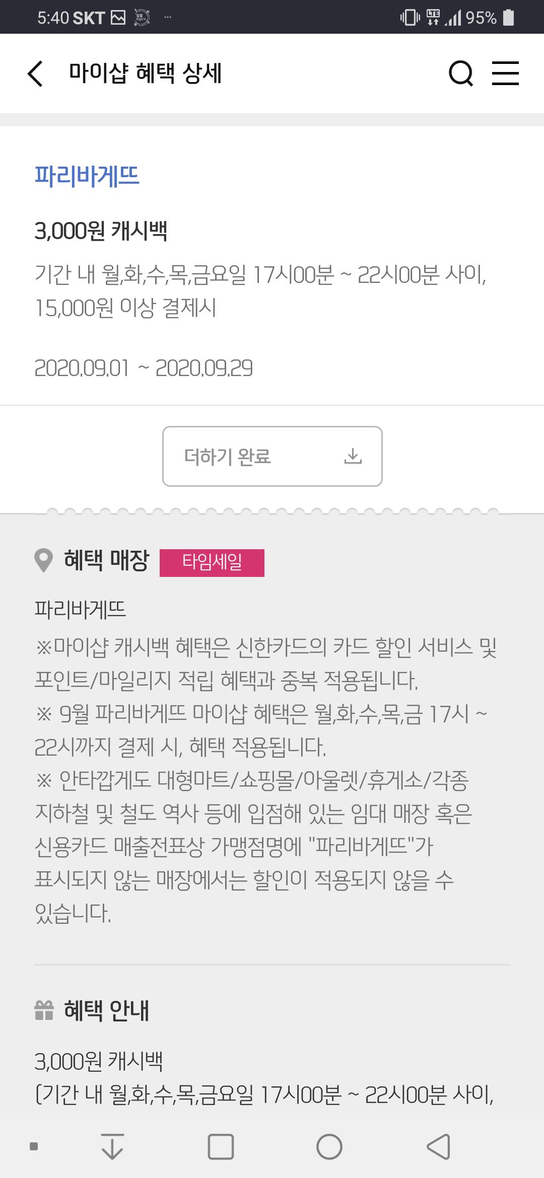 파리버게뜨는 17시부터 22시까지 주중에 15000원 이상 결제시 3천원 할인이네요..