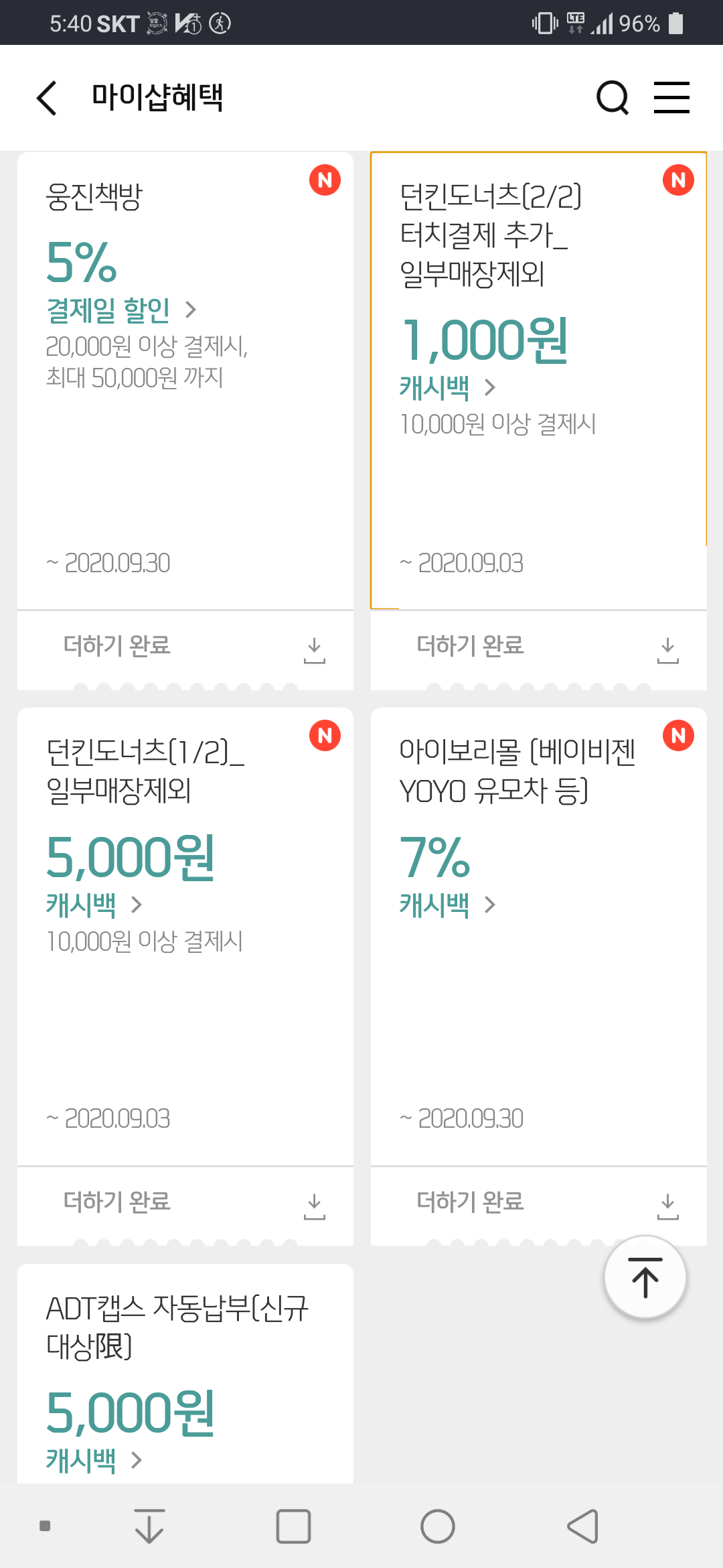 던킨은 9일까지 매장에서 만원 이상 신한터치로 결제시 기본 5천원 할인에 1천원 추가 할인이 됩니다.
