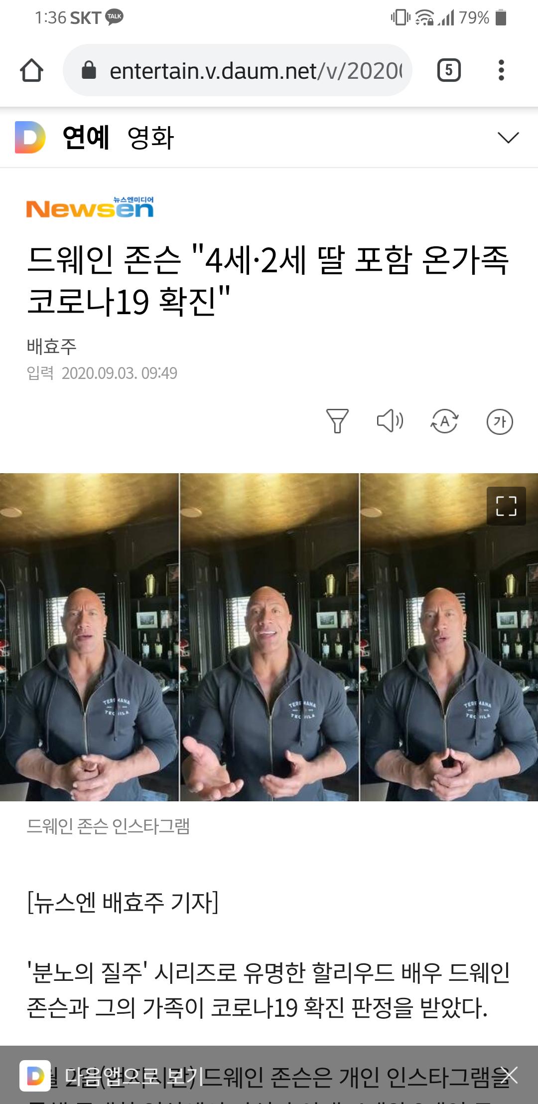 더 롹이 코로나 라니...다들 완치 되길 ... |