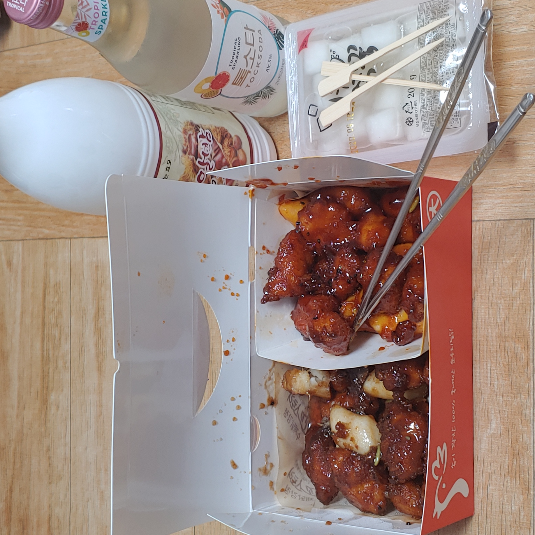 지난번에 사온 톡소다와 먹다 남긴 밤막걸리 꺼냈습니다