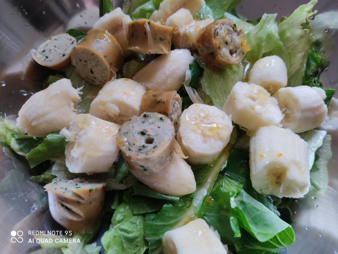 바나나,상추,로메인,닭슴가소세지,샐러드약간 해서