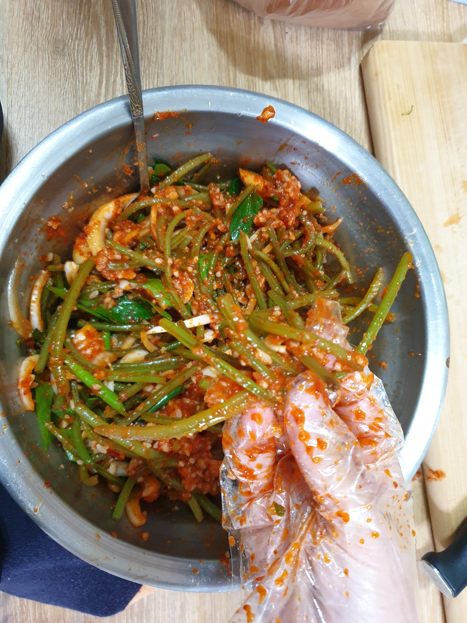 부추 넣어 무치면 더 맛있다는데 급하게 있는재료로만.. 첨해서 간이 싱겁더라구요 ㅋ