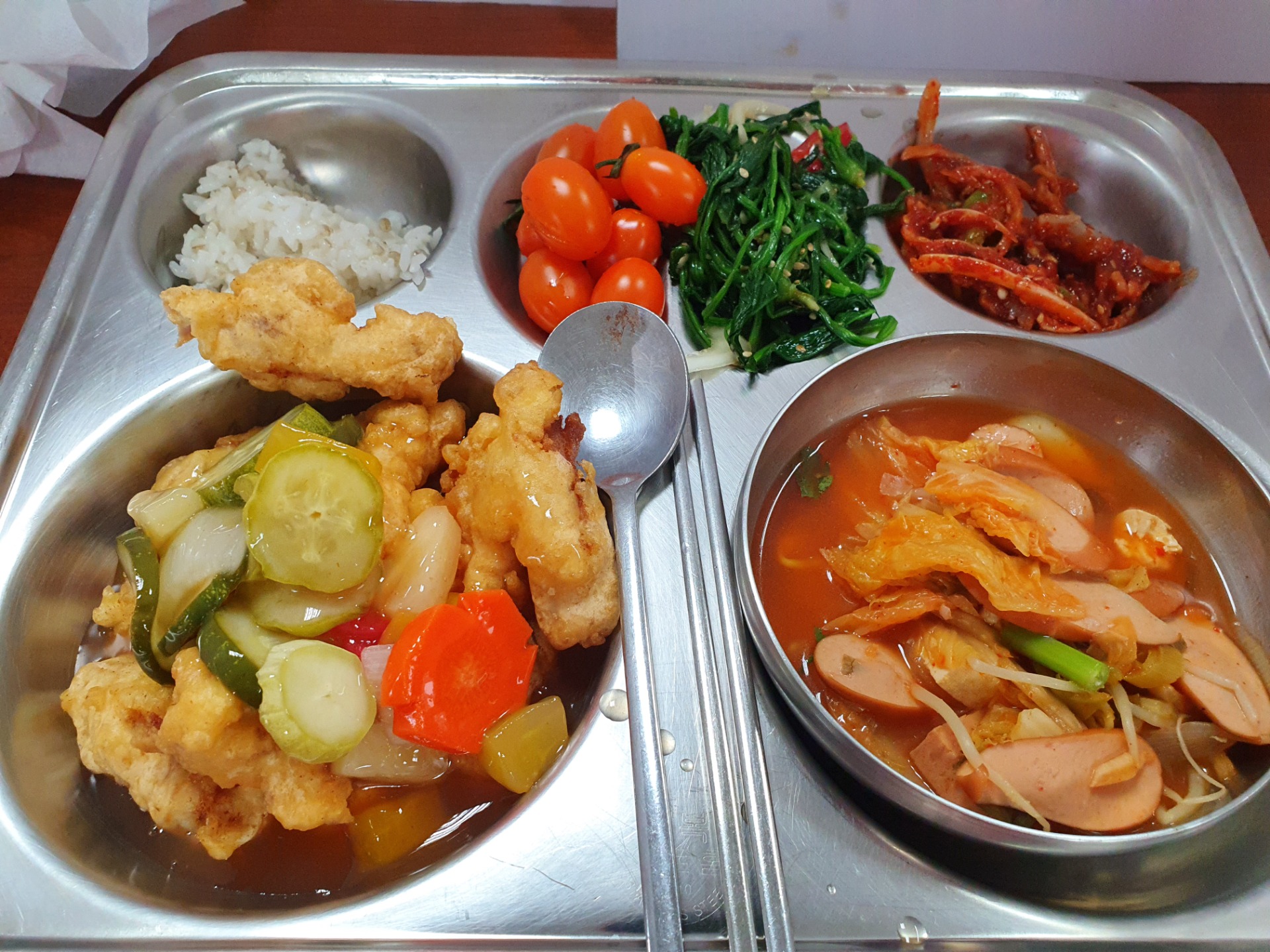 vs가 아니잖아요~ 탕수육+부대찌개 ㅋㅋㅋ |