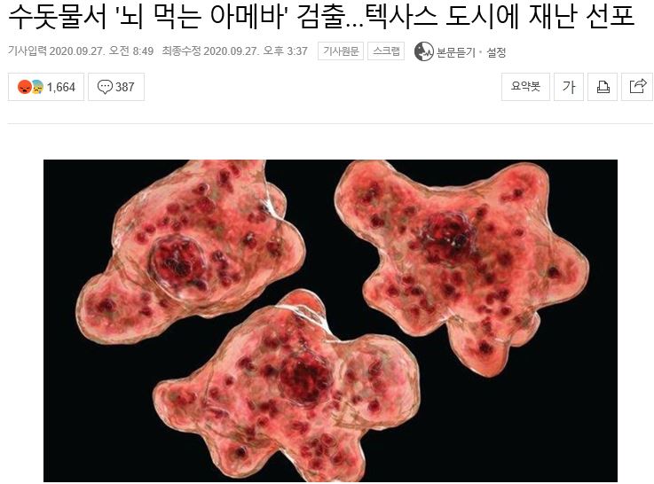아뇨 저 소년이 걸린 후에 지역조사했을때 수돗물에서 검출된거라네요 | ||