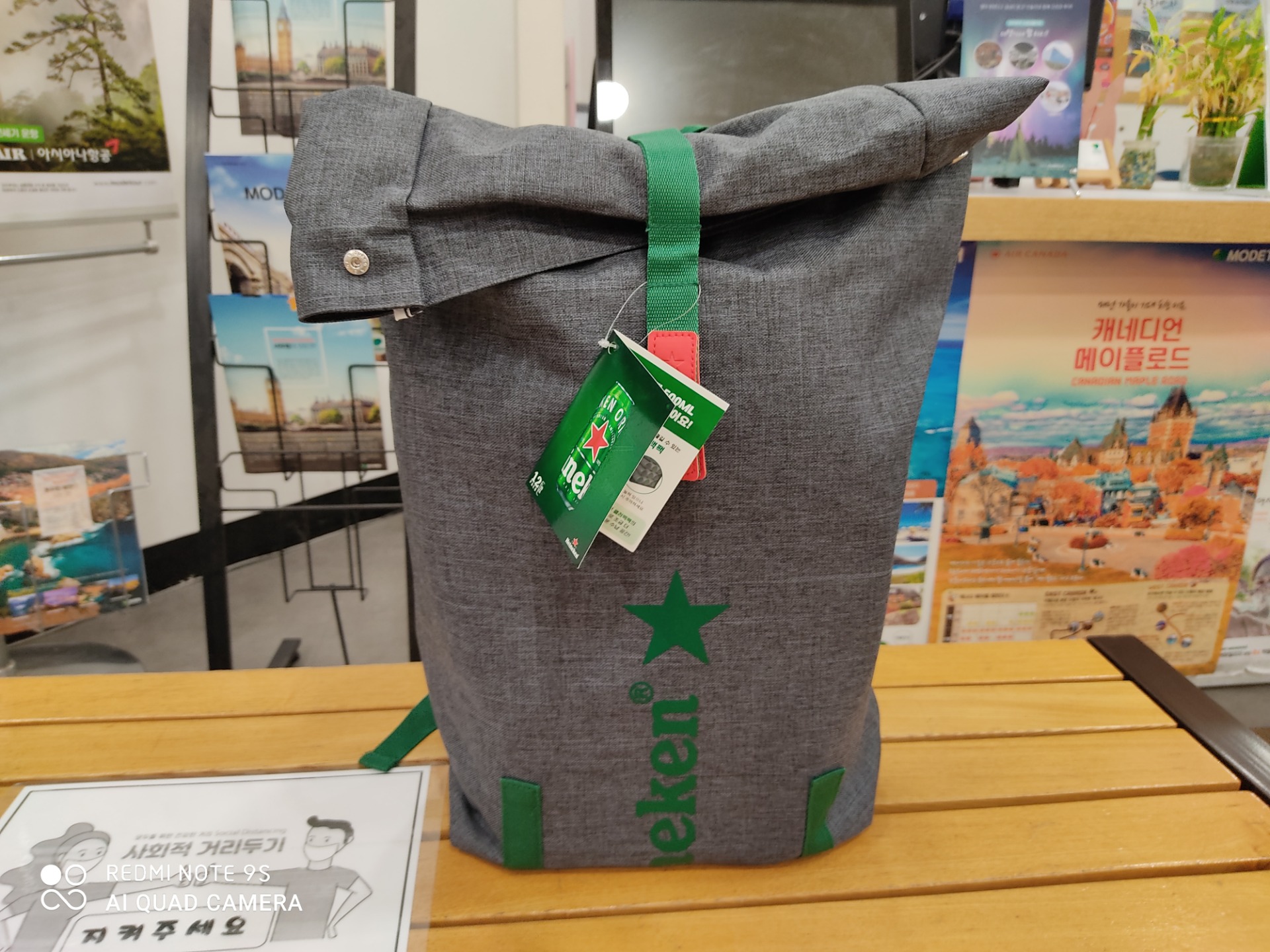 안에 은박지로 둘러싼 맥주 쿨러 백팩입니다ㅎㅎ