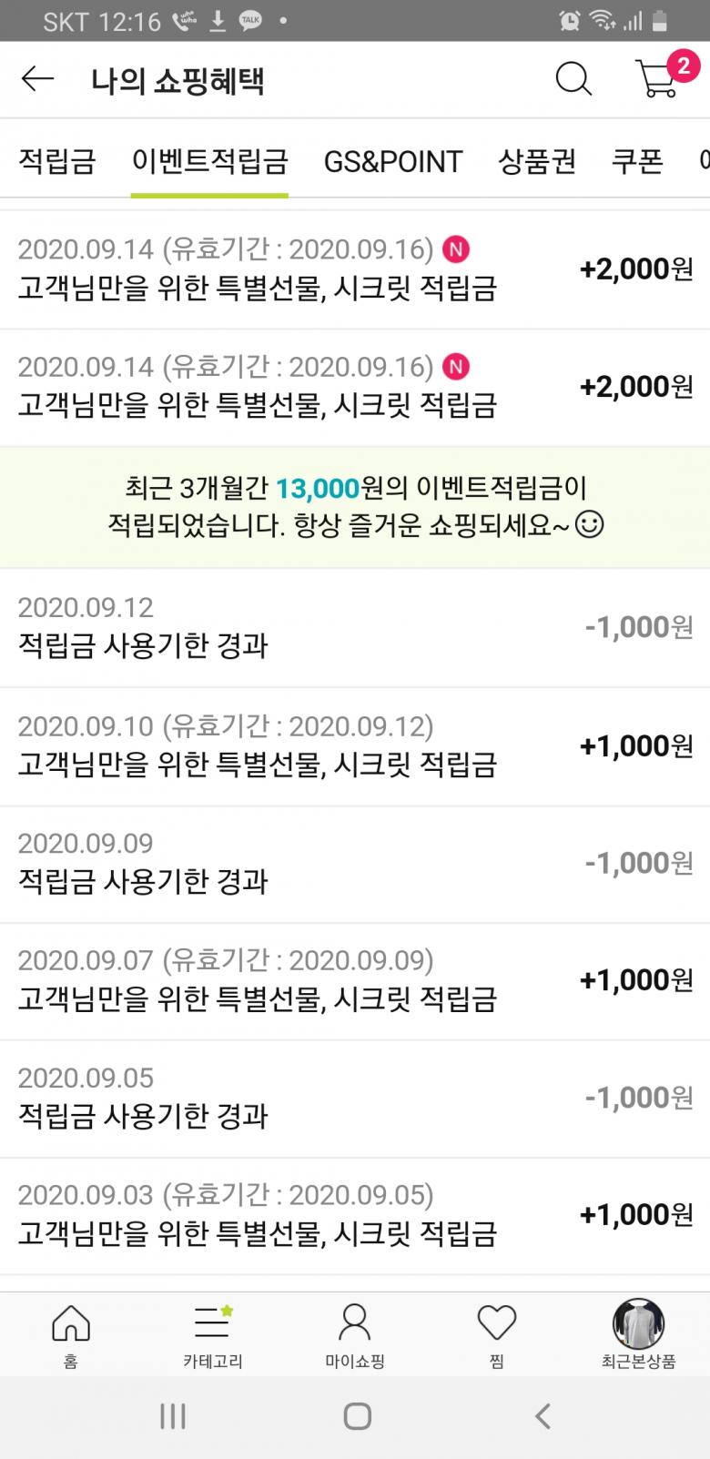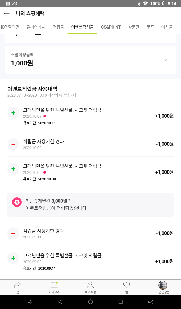 지에스 샵이죠? 가끔 접속해보면 몰래 줬다가 몰래 소멸시키는 ㅎ |