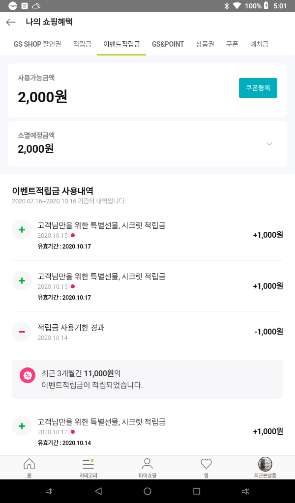 근데 어쩌면 타깃이나 가끔씩 전체 회원 주는거 이번에 주는걸지도 ㅎㅎ