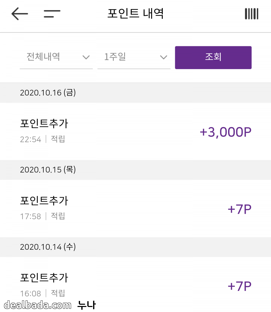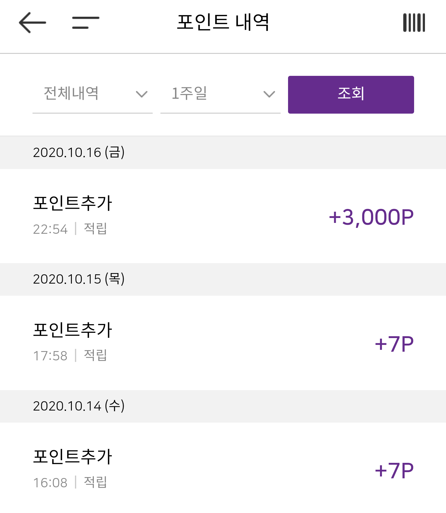 보인숫자가 이상해서 확인해보니 3천포인트당첨!