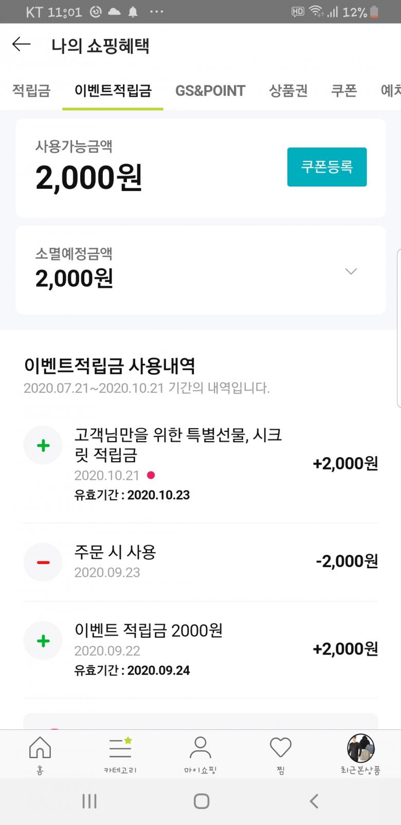 gs샵 적립금 천원 올랐어요ㅎㅎ > 자유게시판