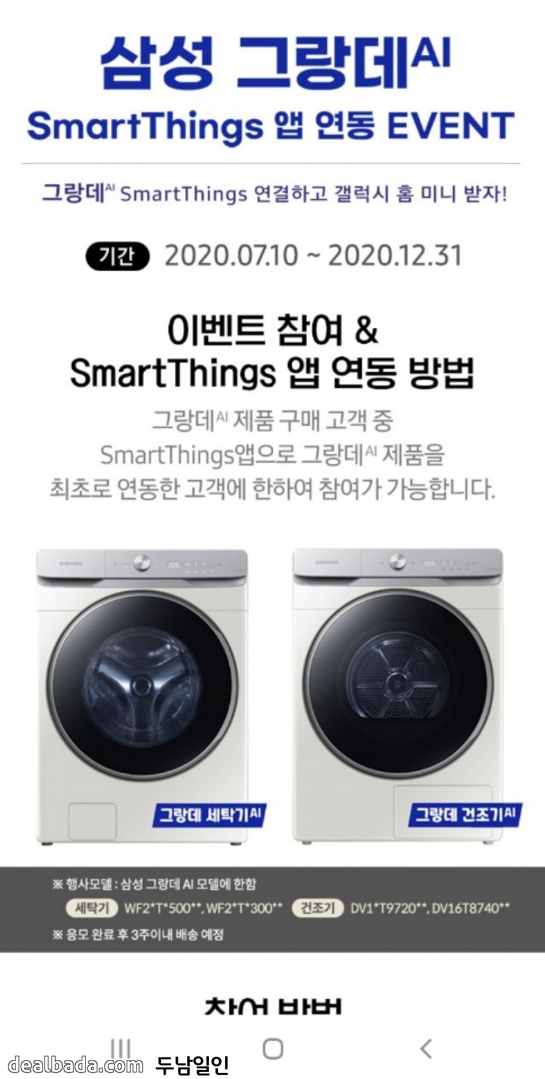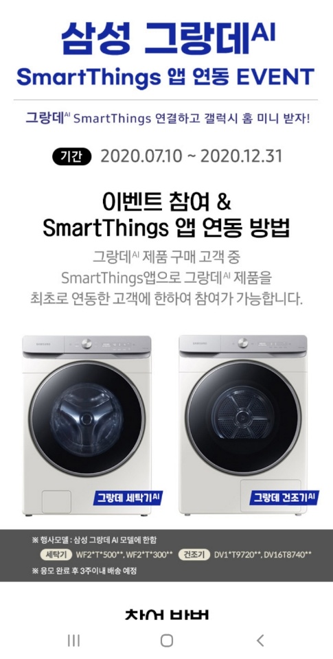 삼성 그랑데 세탁기 혹은 건조기 구매 하신 분 이벤트 응모하세요.
