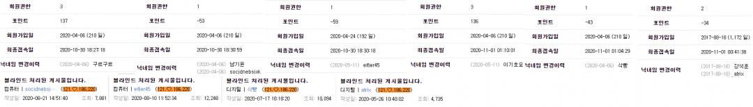 6명중 4명의 아이피가 같고 4명은 가입일, 3명씩 접속시간이 비슷해요