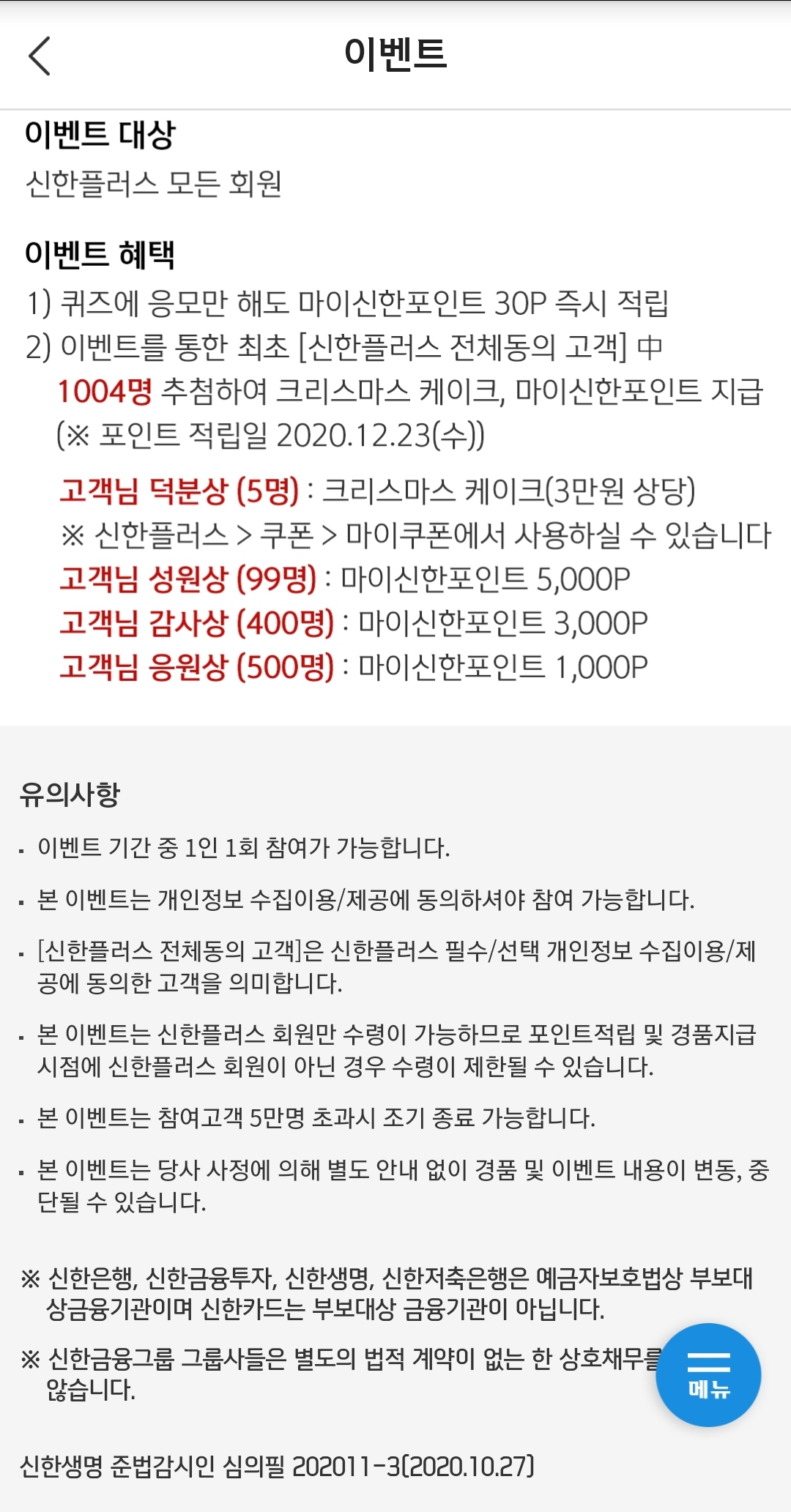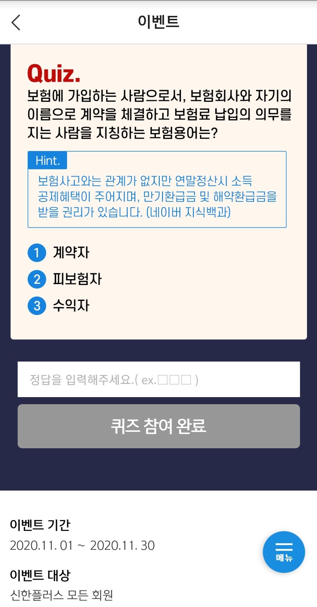 신한플러스 - 신한생명 알쓸신잡 이벤트 시즌1 퀴즈