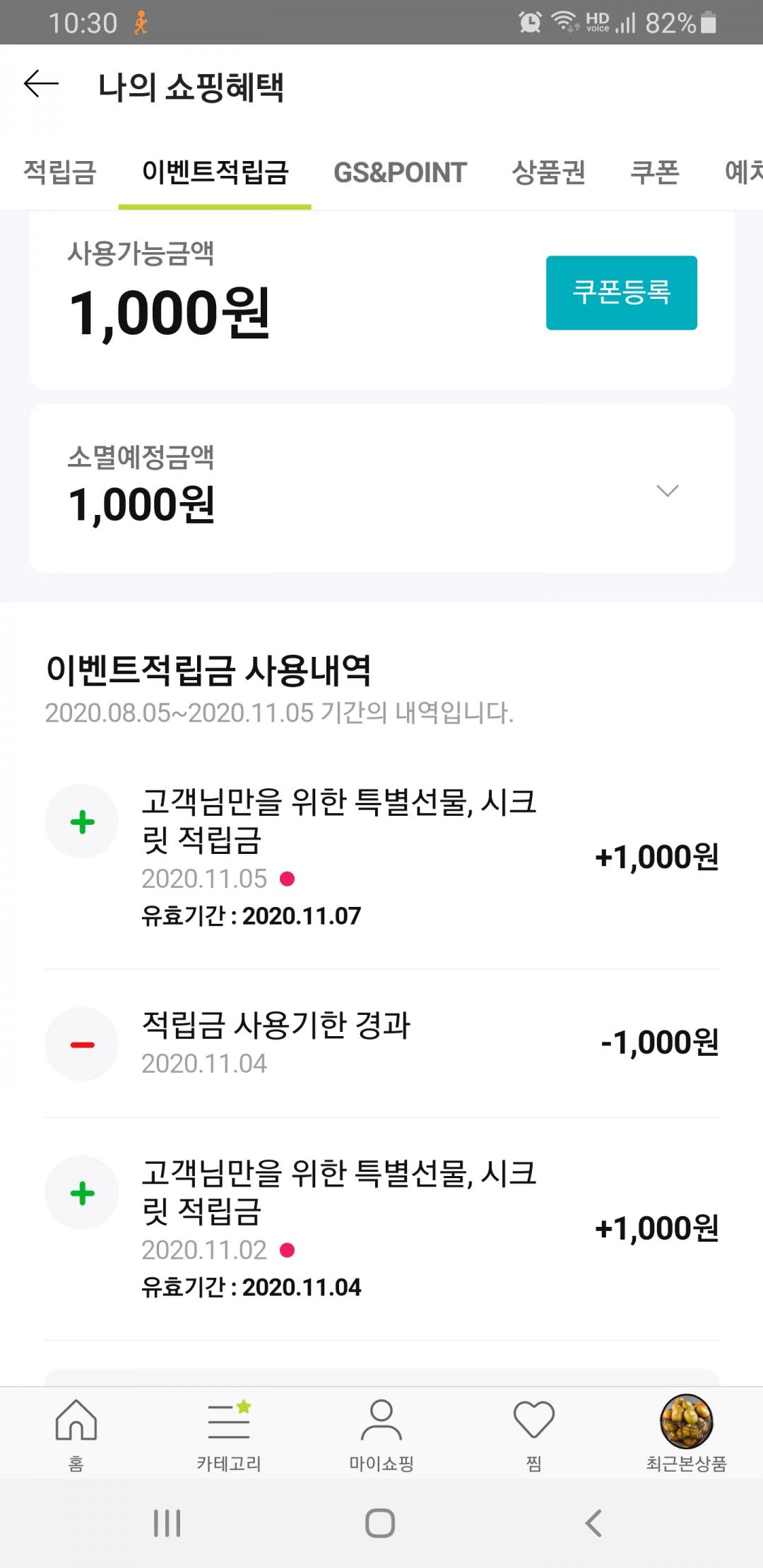 1000원이라 안 썼더니 또 1000원 들어왔네요