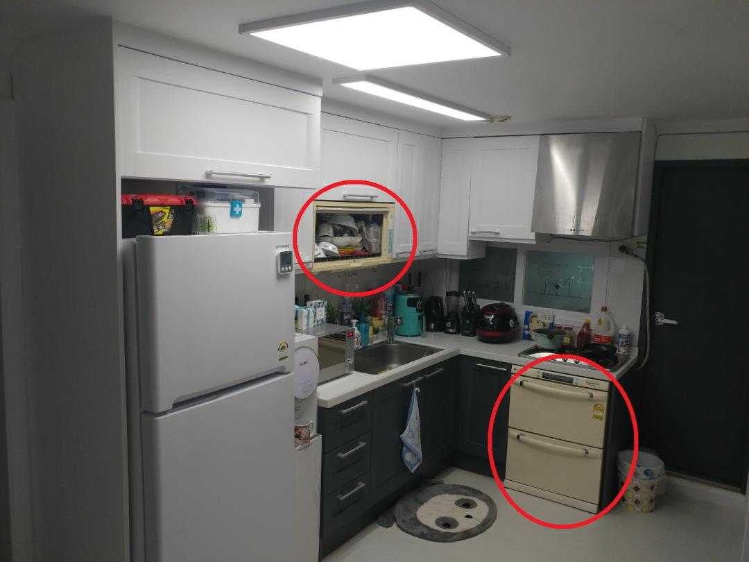 빨간동그라미 친.. 김치냉장고와 식기건조대 둘다 고장나기도했고 자리만 차지하고