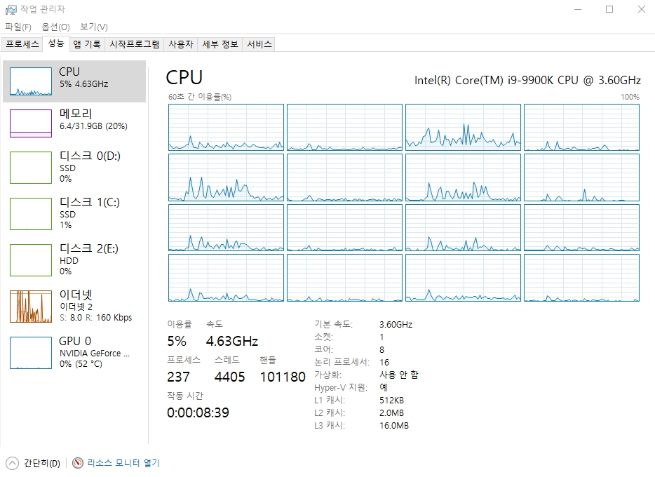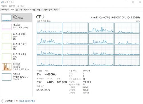 역시 작업관리자 갬성 시원시원하구요
