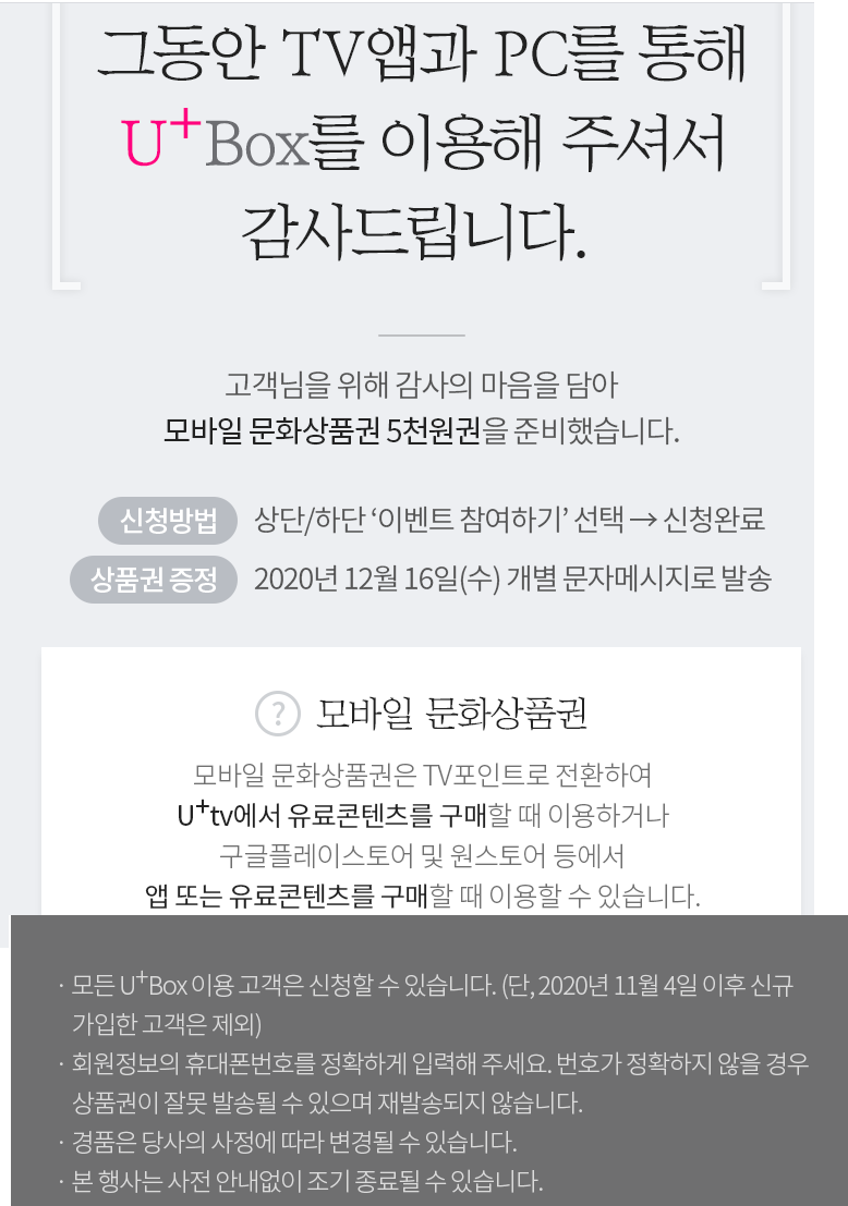 U+BOX 쓰는분 종료 이벤트 확인하세요