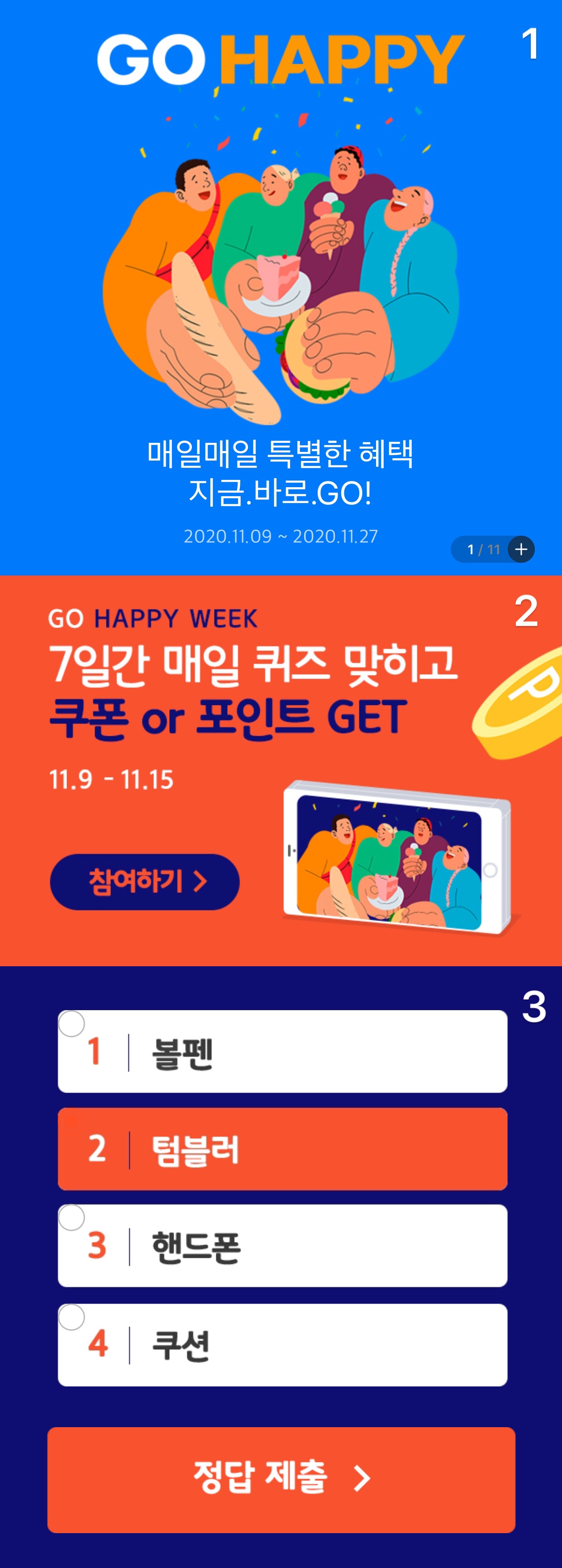 해피포인트앱 퀴즈 (11/9 - 11/15)
