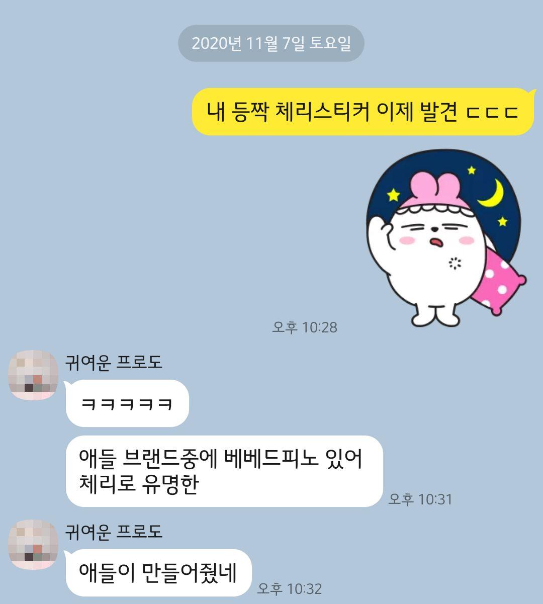등이 서걱거려서 뭐지 했더니 체리스티커 ㅋㅋㅋ
