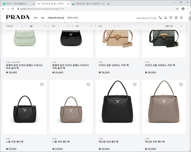 프라다 홈페이지인데 가격이 다 저렇네요.
