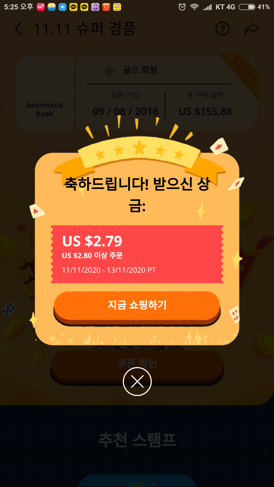 엥 저는 아무런 쿠폰도 없네요. 예전에 시계 구매했던 구매자가 1달러 쿠폰 준거외에는요 |