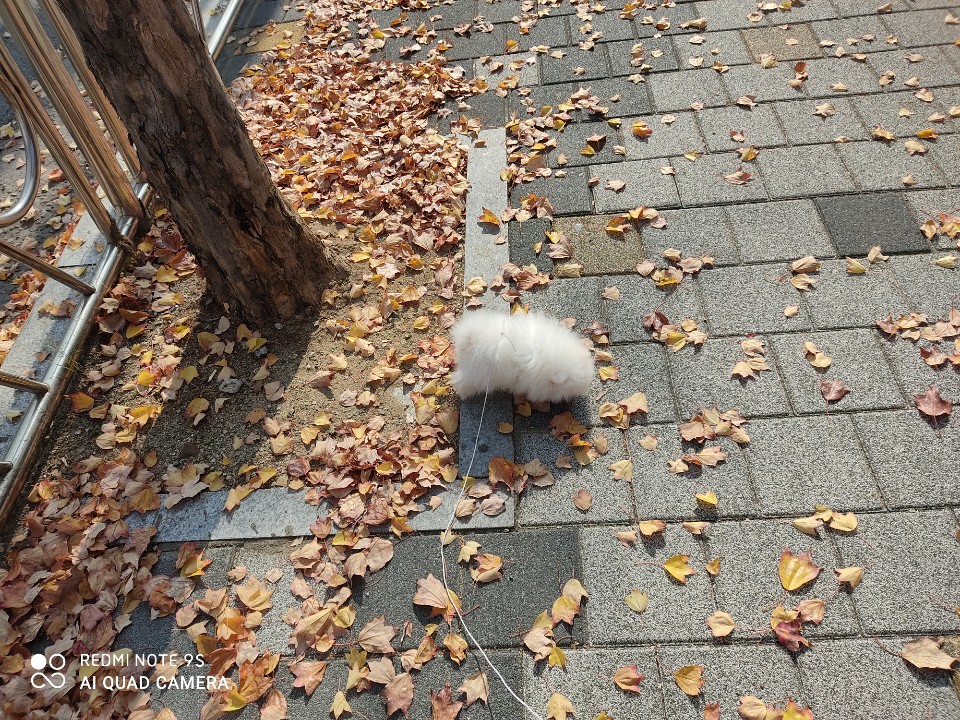산책까진 아니고 낙엽밟아보라고 5분산책..