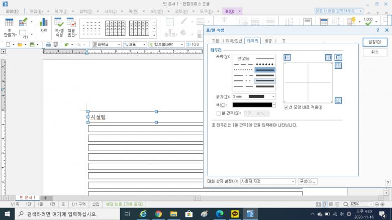 우측 네모칸4개짜리 테두리에 있는 선들을 한번씩 눌러주셔야(선택) 그 부분에 반영이 됩니다~~ |