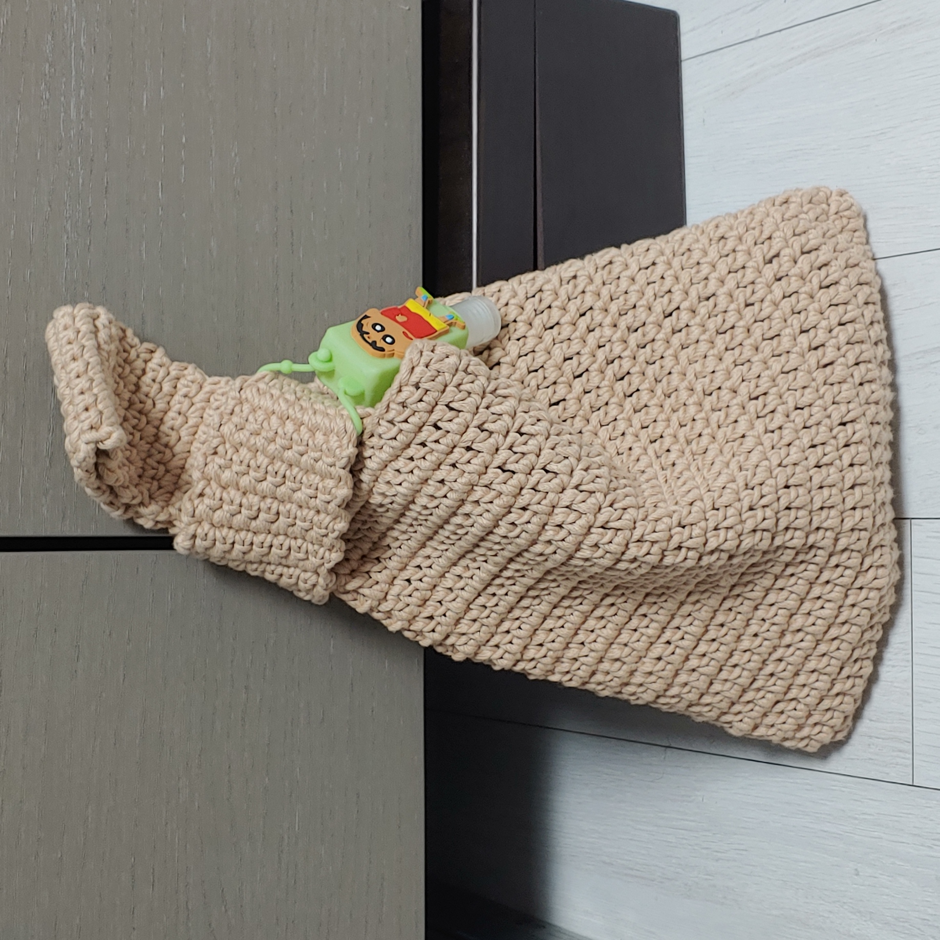 가방이 무겁지 않으니끼 손목에 걸고 주머니 손넣고 다니니 편하더라구요. 짱구는 손소독제입니다