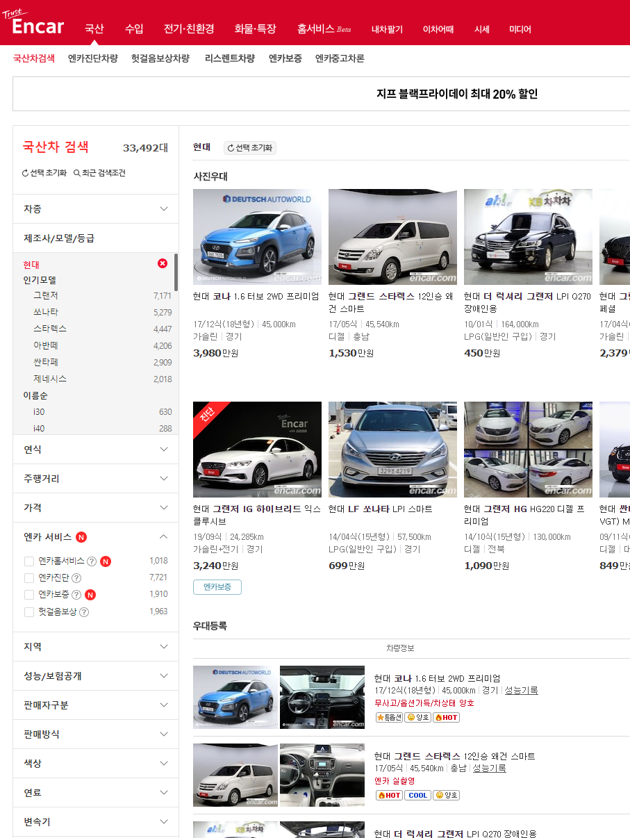 엔카에서도 검색하기 버튼 누르면 아래 화면이 휑하구요.